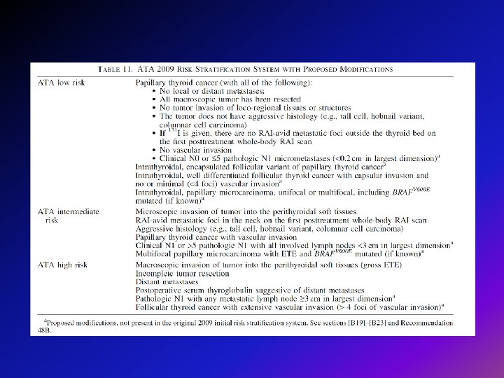 CARCINOMI DIFFERENZIATI DELLA TIROIDE (Papillare e Follicolare) • 90% di tutti i tumori maligni della tiroide • 1% dei tumori maligni umani Incidenza annuale negli U. S. A 0, 5 -10/100. 000 22. 000 casi PROGNOSI FAVOREVOLE SOPRAVVIVENZA A 20 ANNI > 90 %