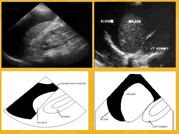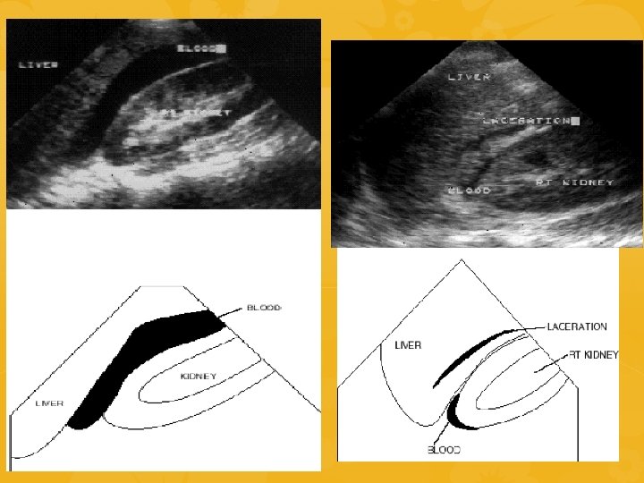 ECOFAST SCOPO: identificare raccolte ematiche nelle cavità del corpo dove non dovrebbe esserci Esplorazione 4 aree 1. QSD 2. Sottoxifoidea 3. QSS 4. Soprapubica INDICAZIONI NEL TRAUMA: • Emorragie toracoaddominali • Trauma penetrante toracoaddominale • Sospetto tamponamento pericardico • Paziente con ipotensione di ndd • Trauma toracoaddominale nella