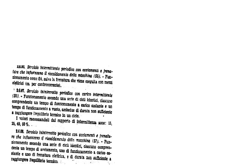 n n È un particolare caso di carico variabile. Si raggiungono una sovratemperatura minima m ed una sovratemperatura massima M di regime. Si definisce un rapporto di intermittenza i tipico del servizio: Con le relazioni del carico variabile si possono calcolare m e M. Ricordiamo che il SIF per macchine rotanti, per l’assenza di ventilazione, può essere più gravoso del SIR.