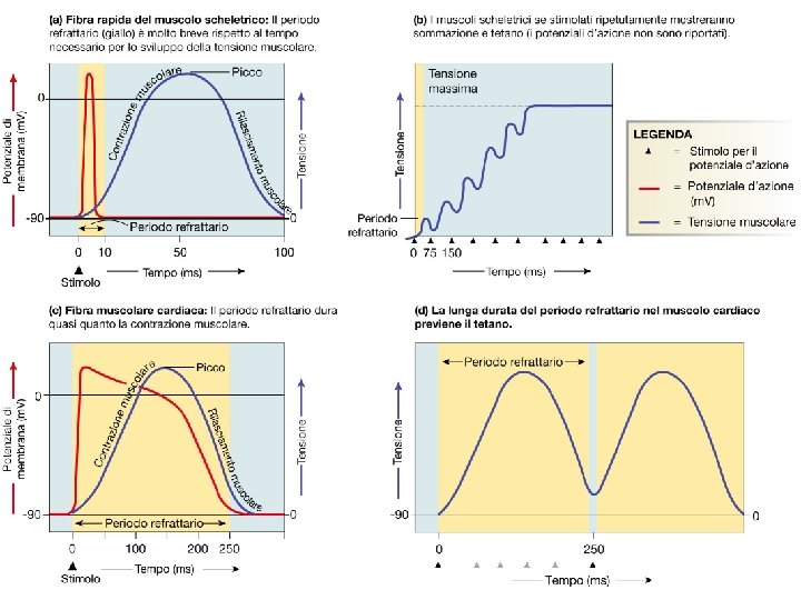 Variazioni di eccitabilità durante il potenziale d'azione: periodi refrattari. La risposta meccanica compare durante il potenziale e ha circa la stessa durata: il cuore non può essere tetanizzato