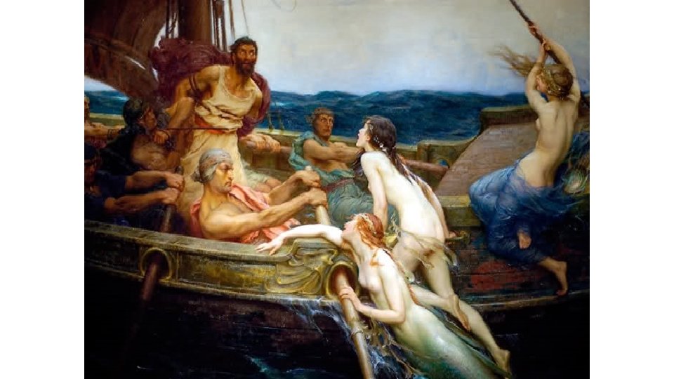 LE SIRENE Quando ripresero la navigazione passarono vicino a un’isola su cui c’erano delle sirene: si pensava che il loro canto incantevole fosse in grado di ammaliare chiunque passasse a loro vicino. Ulisse voleva sentire il loro canto ma, sapendo che poteva morire, pensò di mettere della cera fresca nelle orecchie dei compagni. Poi disse loro: ” Io voglio sentire il canto delle sirene, quindi mi legherete all’albero maestro» . Passando davanti alle sirene Ulisse supplicava i suoi compagni di lasciarlo