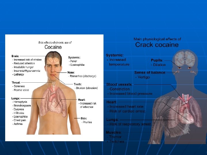 Long Term Effects On The Human Body n n Neuro-chemical changes in the brain Infection of heart lining and valves Arthritis Bacterial infections Addiction • Compulsive drug seeking and use • Physical dependence • Higher dosage to obtain the same effect