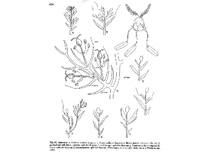 Grass Adaptations to Semi-Arid Conditions and Grazing • Leaf cells (bulliform cells) allowed the leaves to roll up during drought to avoid desiccation • basal meristem allowed leaves to recover and grow back following grazing • basal meristem and silica content (opal) in plants probably evolved in response to grazing - silica to prevent or lessen grazing • petals became modified into structures called lodicules which enabled the florets (small flowers) to open when moisture was favorable and close during times of excess moisture or drought