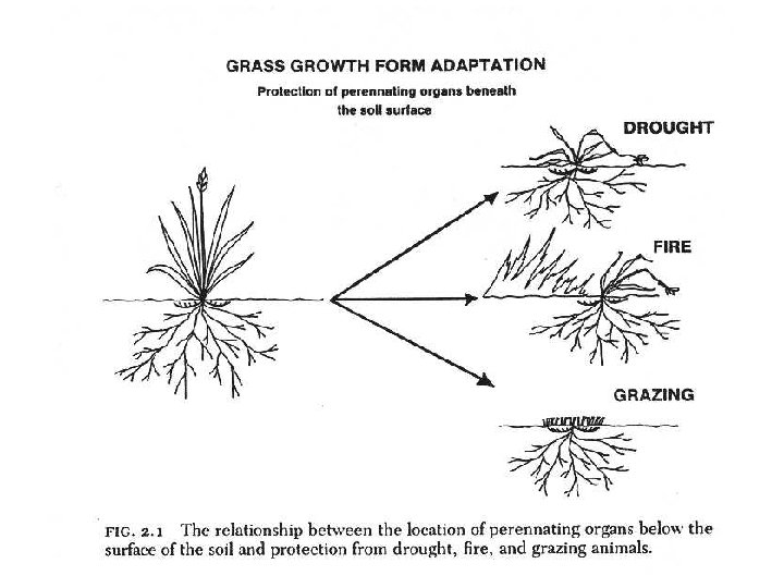 Grazing in Illinois Prairies Illinois tallgrass prairie plants vary in response to grazing - ability to withstand grazing depends upon several factors: 1. possession of rhizomes 2. capacity for production of lateral shoots 3. small height and erectness of growth habit 4. lateness of seed germination and spring growth 5. slow growth rate 6. lateness of elevation of stem apex above minimum point of grazing