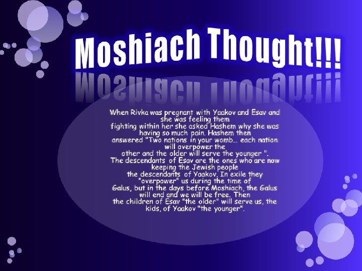 Here’s a fun Chanukah game to play at home or in your Chabad house. Each person must bring a Chanukah gift wrapped up. Everyone sits in a circle and holds their gift. The “leader” reads the story and whenever you hear “left” you move your gift to the “left; ” whenever you hear “right, ” you move your gift to the right. At the end, everyone enjoys the gift in their hand : ) Enjoy! Chanukah Game RIGHT from the start, we were always RIGHTFULLY Hashem‟s chosen nation. The other nations were LEFT to believe that they had the RIGHT to persecute and the RIGHT to eradicate the Jew, so that there should be nothing LEFT to even “RIGHT” about. Well I‟m sure you guessed RIGHT, They didn‟t succeed and we were LEFT as always, Hashem‟s chosen nation, we were LEFT to do his mitzvos, and we were LEFT to be different than the other nations! The story of Chanukah is just another RIGHT example; Antiyochus felt it RIGHT for all his subjects to be strong and well learned in the philosophies he felt to be RIGHT and just, yet the Jew was not to be LEFT out. so he decided to “RIGHT” a decree that the Jews had no RIGHT to perform certain mitzvos. And so the soldiers marched into Jerusalem. They went RIGHT to the Bais Hamikdosh and LEFT it broken and dirty. Yehudah Hamkabi LEFT his safe home in Modin and went RIGHT to work; getting an army together, crying RIGHT out “Mi lahashem aylai”. He sent his soldiers marching to Jerusalem. RIGHT, RIGHT, LEFT, RIGHT As we all know with Hashem at his RIGHT hand, he LEFT Antiyochus‟s army wounded as they LEFT Jerusalem in shame. And this time they marched RIGHT, RIGHT out of Jerusalem. They LEFT RIGHT out of Israel. And the Jews were LEFT in peace. The Jews went RIGHT to work in the Bais Hamikdosh. They couldn‟t believe what was LEFT of the beautiful Bais Hamikdosh. When they set everything RIGHT again, they realized that when the Greeks LEFT there wasn‟t even a single pitcher of pure olive oil LEFT to be used. They couldn‟t make new oil RIGHT away since it took eight days to do it RIGHT. They searched RIGHT and LEFT, and RIGHT again until they found a tiny pitcher, just RIGHT for one night. The excitement spread through the city RIGHT away, that one pitcher of oil was LEFT and they would not be LEFT in the dark for even one more night. The Kohen Gadol lit the candles and the Jews thanked Hashem for the pure jug of olive oil that the Greeks had miraculously LEFT behind. They LEFT that night in high spirits but were unsure about what to do tomorrow. The next morning they couldn‟t believe what greeted their eyes. The menorah stood RIGHT where they had LEFT it and the oil was LEFT in it. The Jews were exalted! Hashem had LEFT the light for the Jews for yet another night. And so the lights were LEFT burning for yet another night, and they were LEFT burning for a fourth night, and they were LEFT burning for a fifth and six night, and they were LEFT burning for another two nights, making it eight nights, until the new oil was just RIGHT. And yes, we still have some of this light LEFT till today guiding us in our hard times. But wait! Is is RIGHT to light the candles in our menorahs from RIGHT to LEFT? Or from LEFT to RIGHT? No, we start the lights on the RIGHT side of the menorah, but we light the first one from the LEFT continuing on to the RIGHT. Did you get that RIGHT? ? Now you can open the gift that was LEFT in your hands.