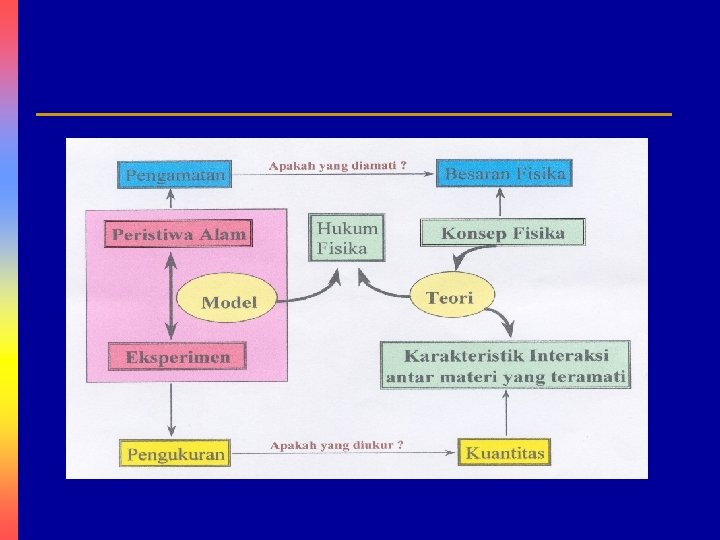 DEFINISI ILMU FISIKA? 4. Mekanika Kuantum Path integral formulation, Persamaan Schr hodinger, Teori medan kuantum, Hamiltonian, Partikel identik, Konstanta Planck, Pengikatan kuantum, Oscilator harmonik kuantum, Fungsi gelombang, Energi titik-nol 5. 1. Ralativitas Relativitas khusus, Relativitas umum Prinsip ekuivalensi, Empatmomentum, Kerangka referensi, Waktu-ruang, Kecepatan cahaya. Bidang Utama Dalam Fisika Astrofisika : Kosmologi, Ilmu planet, Fisika plasma Big Bang, Inflasi kosmik, Relativitas umum, Hukum gravitasi universal Konsep : Lubang hitam, Latar belakang radiasi kosmik, Galaksi, Gravitasi, Radiasi Gravitasi, Planet, Tata surya, Bintang. 2. Fisika atomik, molekul, dan optik: Fisika atom, Fisika molekul, Optik, Photonik. Konsep: Optik quantum Difraksi, Radiasi elektromagnetik, Laser, Polarisasi, Garis spectral.