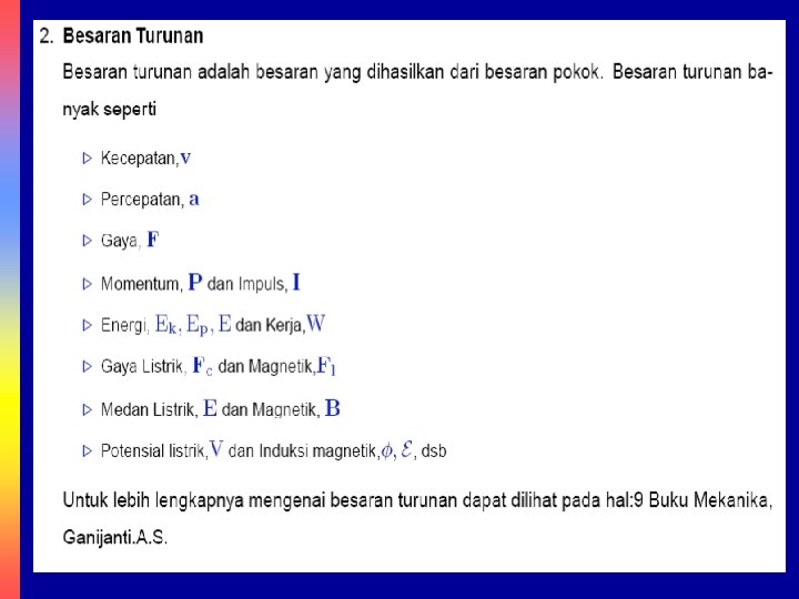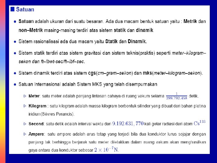 DEFINISI ILMU FISIKA? • Ilmu Fisika dalam Bahasa Yunani: (physikos), yang artinya ”alamiah”, atau (physis), ”Alam” adalah sains atau ilmu tentang alam dalam makna yang terluas. Fisika mempelajari gejala alam yang tidak hidup atau materi dalam lingkup ruang dan waktu. Fisikawan mempelajari perilaku dan sifat materi dalam bidang yang sangat beragam, mulai dari partikel submikroskopis yang membentuk segala materi (fisika partikel) hingga perilaku materi alam semesta sebagai satu kesatuan kosmos. (Wikipedia Indonesia) • Ilmu Fisika disebut juga sebagai Ilmu Dasar atau Basic Science, yang lain adalah Biologi, Kimia, Matematika dan Geologi • Fisika juga berkaitan erat dengan matematika. Teori fisika banyak dinyatakan dalam notasi matematis, dan matematika yang digunakan biasanya lebih rumit daripada matematika yang digunakan dalam bidang sains lainnya. p Perbedaan antara fisika dan matematika adalah: fisika berkaitan dengan pemerian dunia material, sedangkan matematika berkaitan dengan pola-pola abstrak yang tak selalu berhubungan dengan dunia material.