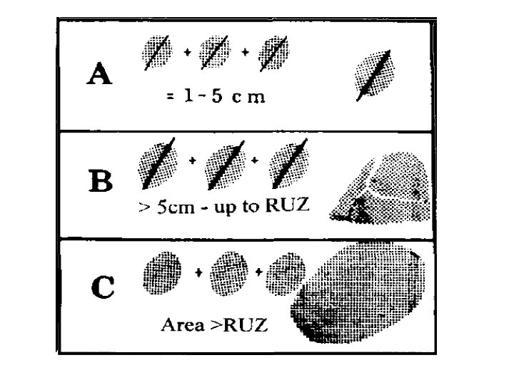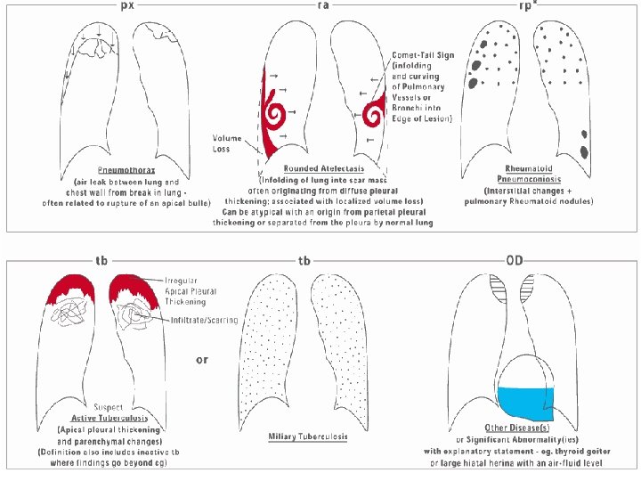 Contd…. ü Category B : one large opacity having the longest dimension exceeding 50 mm but not exceeding the equivalent area of right upper zone ü Category C : one large opacity which exceeds the equivalent area of the right upper zone