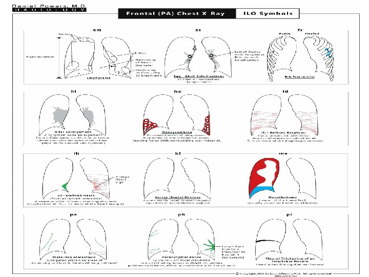 Contd…. . Ø 3 : large opacities are shown (A, B, C) Ø Remaining 2 radiographs are composite reproductions of sections from full-size chest radiographs. ü One depicts increasing profusion of irregular small ‘u’ sized opacities ü Other one illustrates various pleural abnormalities