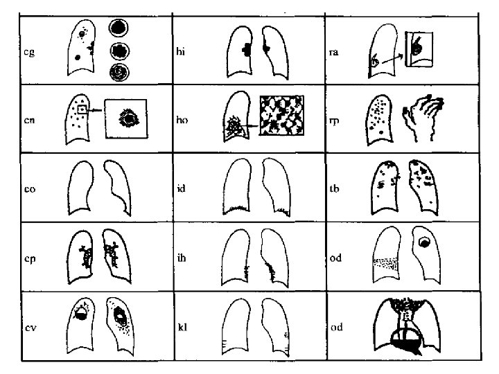 • SMALL OPACITIES : a. Profusion b. Affected zones of the lungs c. Shape d. Size