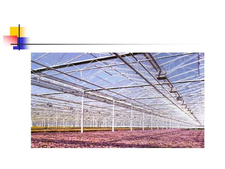 Parámetros básicos a tener en cuenta en un cultivo : n n n Tipo de invernadero: cristal, fibra, plástico. Ancho y largo de área de cultivo. Colocación de bancos de cultivo. Altura de montaje y colocación. Material reflectante. ORIENTACION; norte, sur, este, oeste o combinaciones.