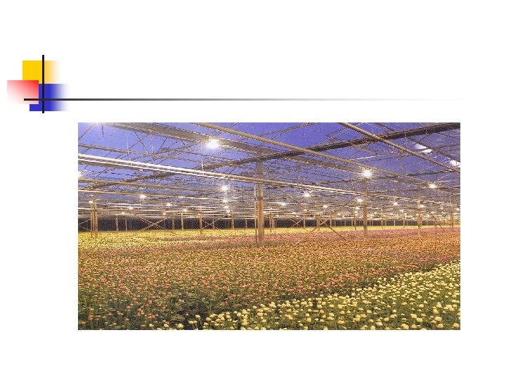 Luz de Foto período n n n Nivel bajo de luz. Duración corta- extensión de día o interrupción de noche. Forzando la prevención o promoción de inactividad de floración.