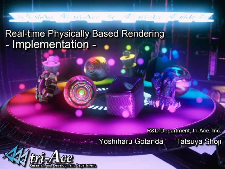 Acknowledgements • R&D department, tri-Ace, Inc. – Tatsuya Shoji – Elliott Davis • Thanks for the English version – Sébastien Lagarde, Marc Heng and Naty Hoffman