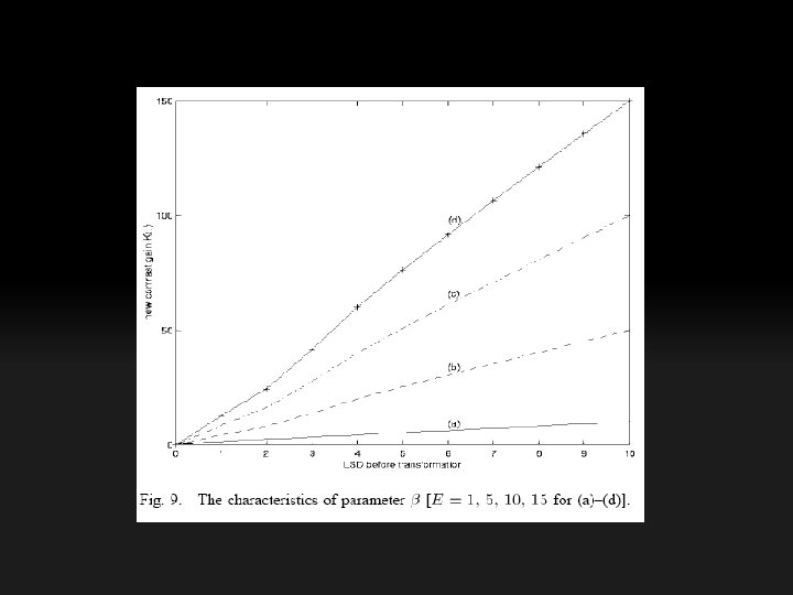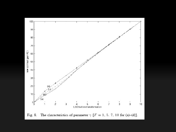 • Instead of α, β, and γ, we use A, E, and F to obtain the desired transformation. Experiments show that this approach greatly facilitates the parameter determination. • 1) Choose a proper constant E. • 2) Choose A such that the MCG can suppress the ringing artifacts in the high LSD region. • 3) Choose F such that the high contrast region can be moved to the desired place.