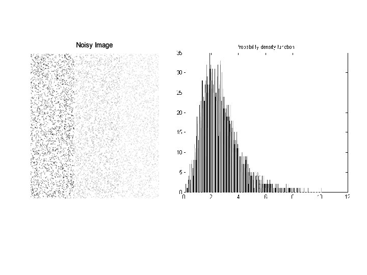 % Rayleigh noise % Read a gray scale image (having few regulat patterns) and add rayleigh % noise of certain mean value, standard deviation and certain percentage. % plot the histogram of noise, noisy image. ensure that the profile of the % noise is visible in the profile of the noisy image. clear all; close all; clc; a = imread('pattern. png'); a = im 2 double(a); size. A = size(a); p 3 = 0. 95; A = 0; B = 2; R = A + (-B*log(1 -rand(size. A))). ^0. 5; x = rand(size. A); b=a; for i=1: size. A(1) for j=1: size. A(2) if (x(i, j)< p 3) b(i, j)=a(i, j)+R(i, j); end end figure, imshow(a); figure, imshow(b), title('Noisy Image'); figure, hist(R, 50), title('Probability density function'); figure, hist(b);