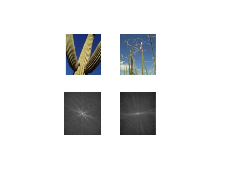 another example: amplitude vs. phase A = “Aron” P = “Phyllis” FA = fft 2(A) FP = fft 2(P) log(abs(FA)) log(abs(FP)) angle(FA) ifft 2(abs(FA), angle(FP)) Adpated from http: //robotics. eecs. berkeley. edu/~sastry/ee 20/vision 2. html angle(FP) ifft 2(abs(FP), angle(FA))