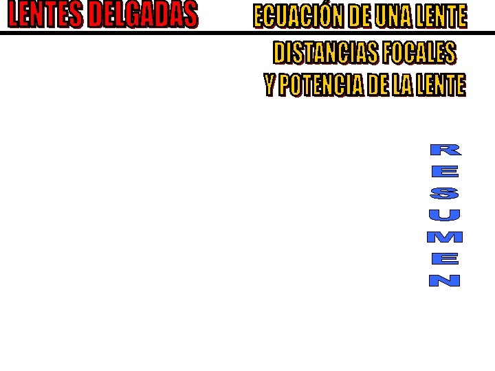 q. CONSIDERACIONES PREVIAS q. DOBLE REFRACCIÓN – DOS DIOPTRIOS CONSECUTIVOS q. ECUACIÓN DE UNA LENTE DELGADA q. UBICACIÓN DE LOS FOCOS- DISTANCIAS FOCALES q. OTRAS FORMAS DE LA ECUACIÓN DE UNA LENTE q. POTENCIA DE LA LENTE q. TIPOS DE LENTES q. CONVERGENTES q. DIVERGENTES q. FORMACIÓN DE IMÁGENES EN LENTES q. BICONVEXAS – CONVERGENTES q. BICÓNCAS - DIVERGENTES