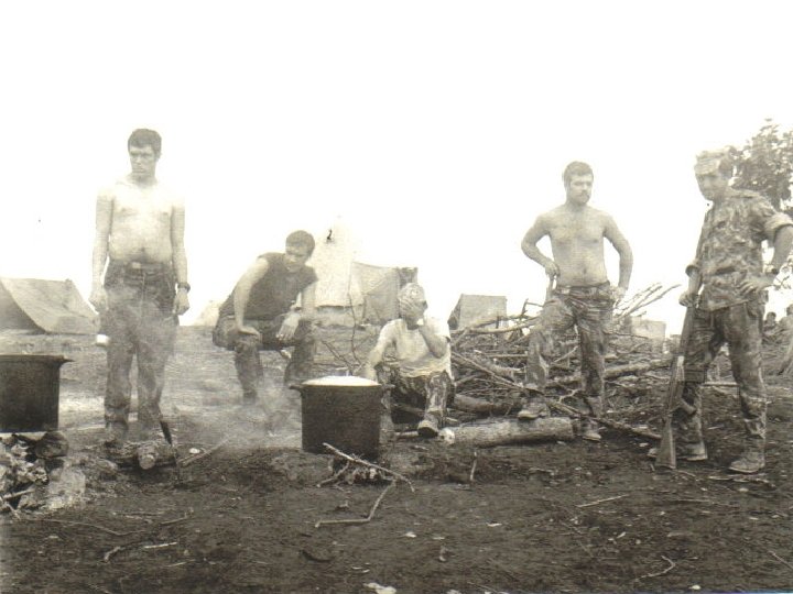 Grupo de soldados e ao fundo a sala do soldado em construção