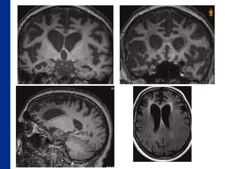 Objectifs de l’IRM v Eliminer une cause neurochirurgicale v Diagnostic des autres démences v Neurodégénératives v v Alzheimer : 60% v. Autres : DFT , Lewy (15%)… Evaluer/localiser une atrophie Estimer les anomalies vasculaires v Démences vasculaires : 8 -15% (Jellinger J Alzheimer dis 2008) ischémiques, lacunes, anomalies de la substance blanche, hémorragiques