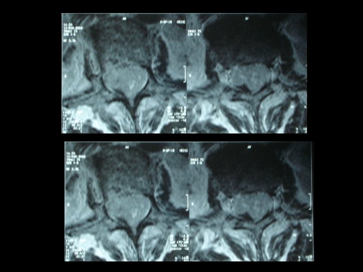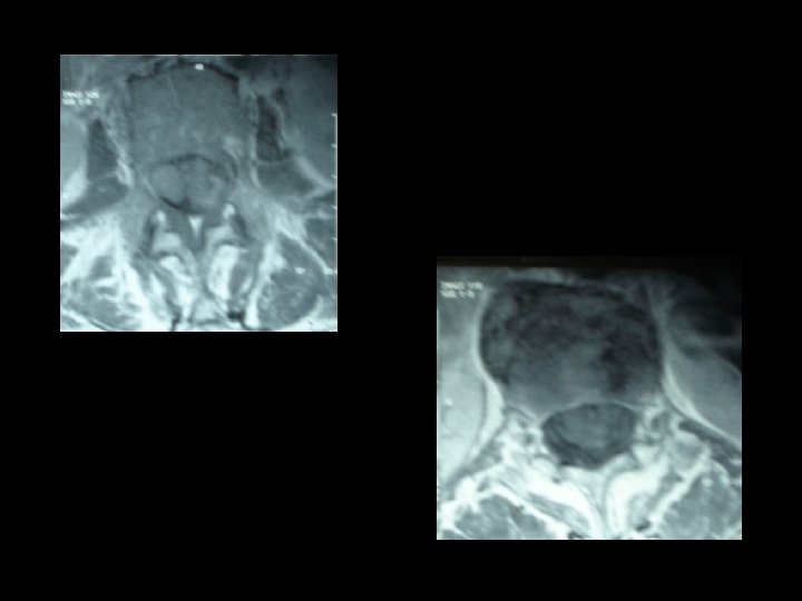 * La présentation clinique n’est pas spécifique. * IRM médullaire : processus expansif étagé comprimant la moelle par endroit. * les lésions sont e hypo signal T 1, hyper signal T 2 et se rehaussant après injection du gadolinium. * l’IRM joue un rôle primordial dans le diagnostic des lymphomes à localisation médullaire.