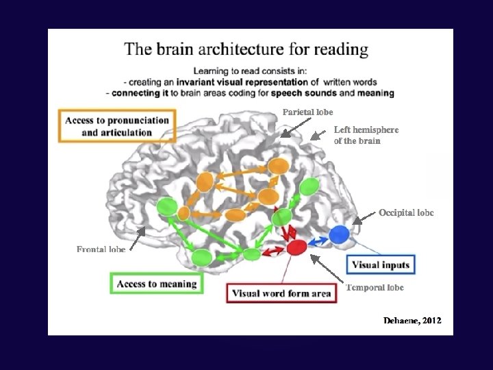 Literacy & Biopsychology Our visual recognition system (VRS) is attuned to line junctions and other invariants of shape in the environment Plasticity of the VRS is sufficient to be reoriented or changed toward the shapes of written words Scripts across human cultures were crafted to shapes that fit with human brain architecture Developing literacy takes time and effort (beginning with learning letters and graphemes) to mold the brain Dehaene, 2012