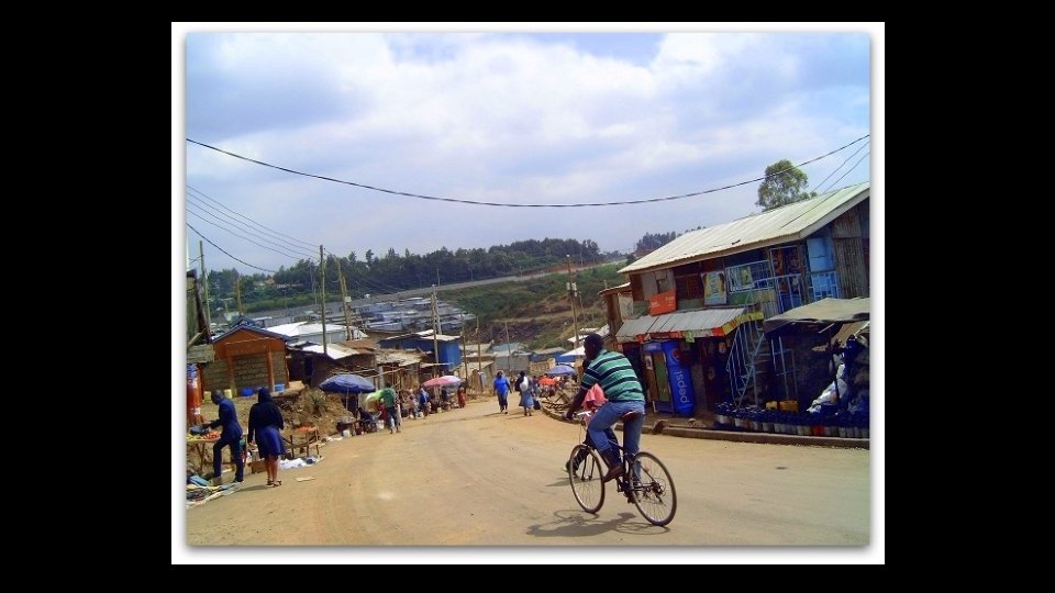 How do Bryan Jaybee describe Kibera and its residents? He uses mainly photos He wants to deconstruct the negative image(s) of this place: By showing that sth negative is positive: „slum is really a heaven when growing up, it widens your scope” …but Kibera equals hard lessons and chaos He describes daily life in Kibera as sth simlar to life in other parts of the city / country; He stresses the importance of education and work for Kibera residents; He underlines potential of Kibera residents that they are ambitious, resiliant and hard working; …Kibera is home to various people