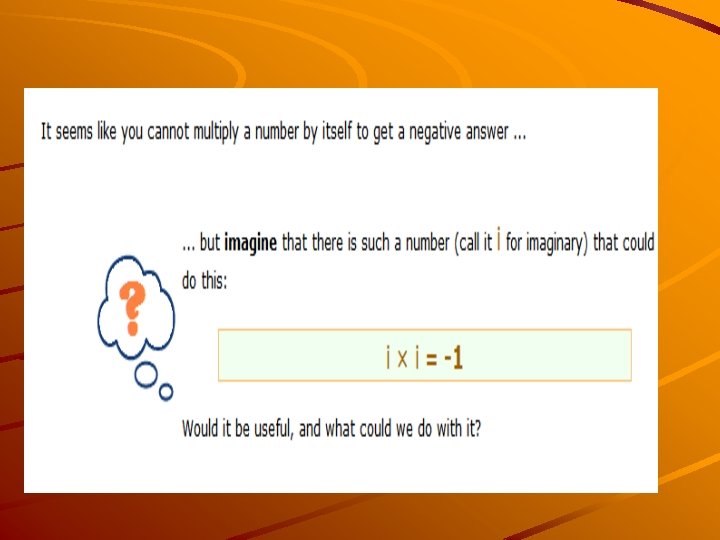 Which is actually very useful because… …by simply accepting that i exists lets us solve things where we need the square root of a negative number.