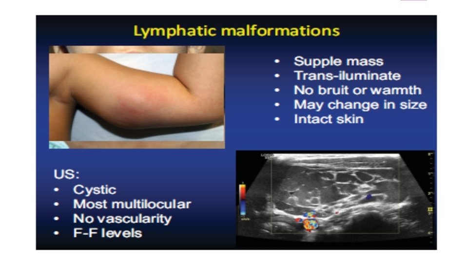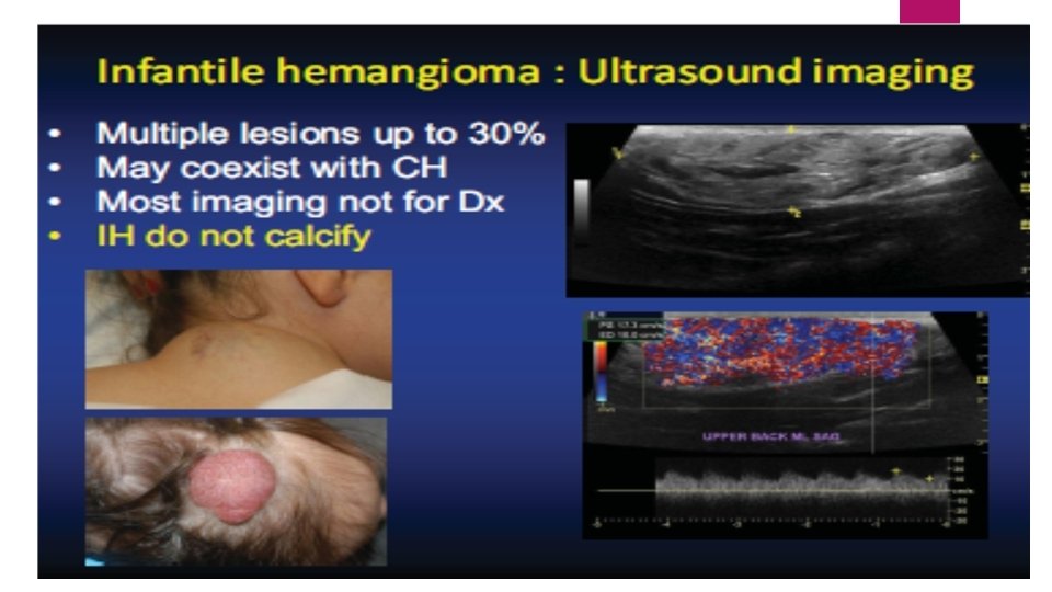 NICH Doppler evaluation : fastflow vessels MRI: features similar to infantile hemangiomas