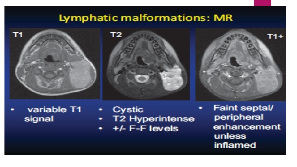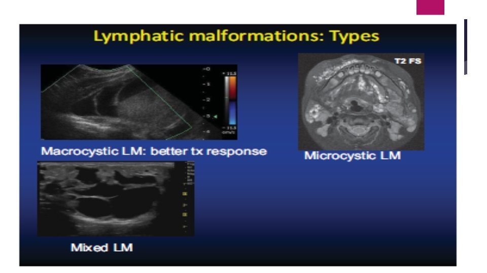 For Lymphatic Malformation: The Best option is: Sonography (4+) then, MRI with gadolinium (3+)