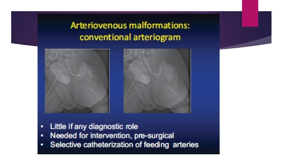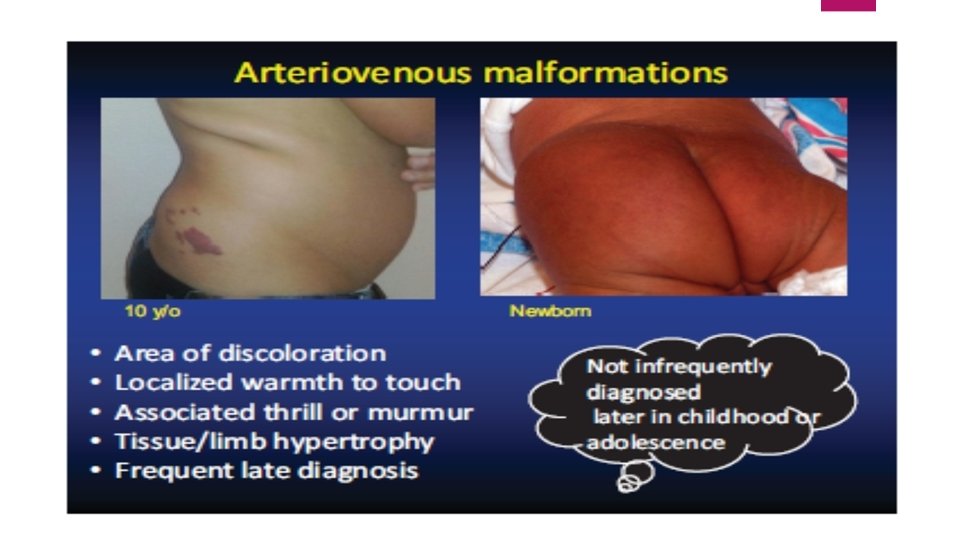 >90% of vascular malformations can be correctly categorized on the basis of their clinical features This helps in the selection of the best investigative tools avoiding redundant and unnecessary diagnostic imaging procedures.