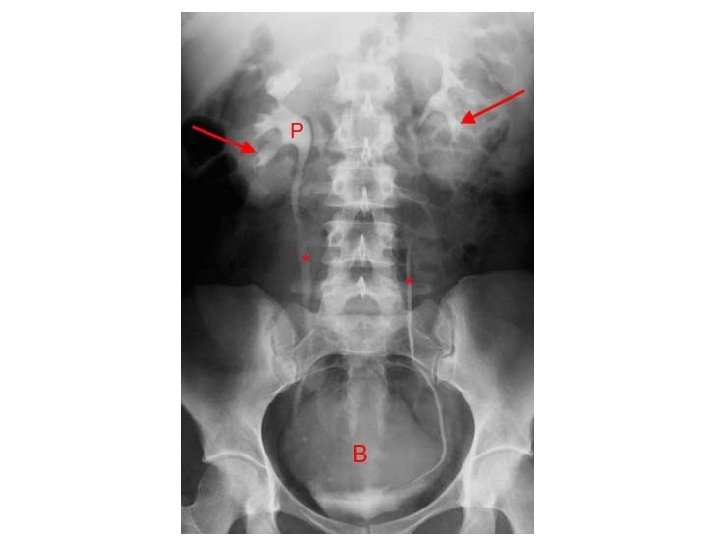 IVU • Conventional x-ray plus intravenous contrast. • Cheap. • Recently replaced by CT and MRI. • Useful for radioopaque stones.