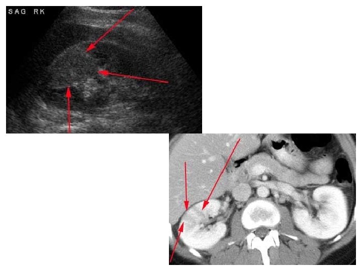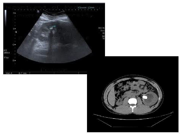 US Image features: • • Operator dependant. Projectional image. Good resolution. Used for stone, hydronephrosis, focal lesion.