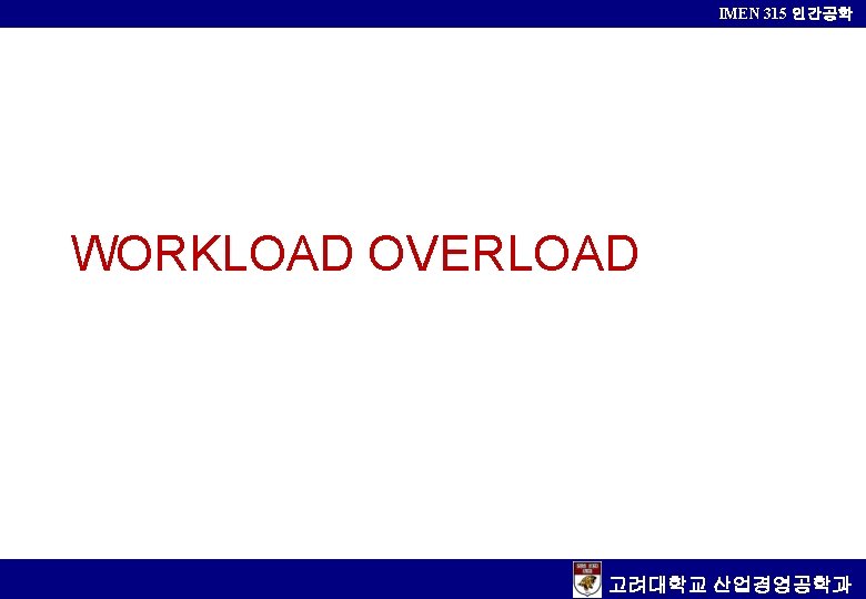 IMEN 315 인간공학 q. Mental Workload Measurement q. Primary task measures q. Secondary task methods q. Physiological measures q. Subjective measures q. Workload dissociations 고려대학교 산업경영공학과