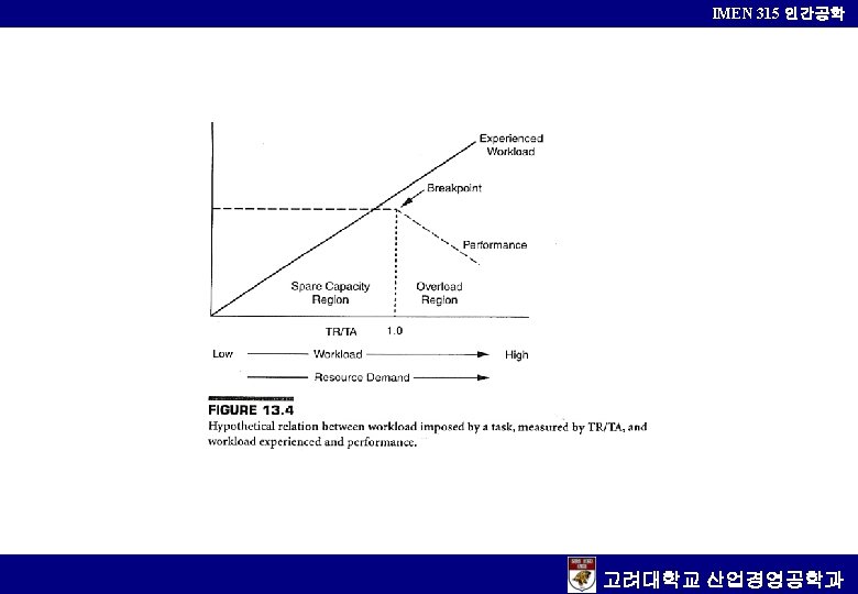 IMEN 315 인간공학 q. Workload q. The timeline model Figure 13. 3 Timeline analysis. The percentage of workload at each point is computed as the average number of tasks per unit time, within each window. Shown at the bottom of the figure is the computed workload value TR/TA. 고려대학교 산업경영공학과