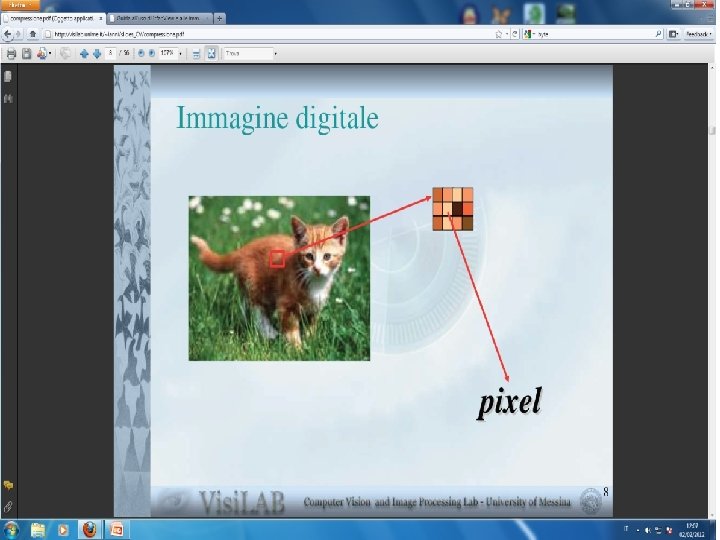 • Quando osserviamo un'immagine in rete, i pixel vengono scaricati dal browser sul nostro computer e riprodotti sul monitor (anch'esso costituito da una griglia di pixel): questa operazione richiede tempo • ingrandendo un elemento grafico bitmap, i bordi dell’immagine risultano frastagliati perchè i pixel vengono ridistribuiti nella griglia. Quindi visualizzando una bitmap con una risoluzione inferiore a quella dell’immagine, la qualità dell’immagine risulta deteriorata.