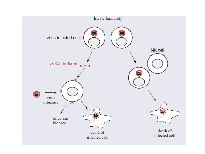 Immune Response to Virus Innate immunity Virus Infected cells IFN- M , DC MHC I Stimulatory ligand IL 12, IL 18 IL 15 Inhibit protein sythesis Apoptosis of infected cell NK cells Lysis of infected cell IFN- Activate antigen presentation Promote TH 1 response
