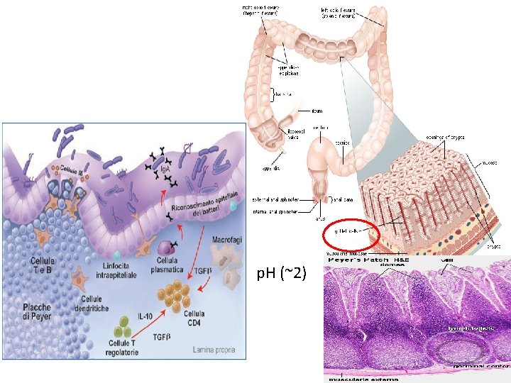 Cute Prima linea di difesa • impedisce l’ingresso di patogeni nei tessuti • Le cellule della cute in superficie producono cheratina Il sebo contiene acido lattico che mantiene il p. H acido (~4) Flora batterica normale (organismi commensali o simbionti) Ruolo della flora normale: • Competizione con i microrganismi esogeni per sede, nutrienti, O 2…(antagonismo microbico) • produzione di batteriocine, antibiotici, azione di batteriofagi… • Metaboliti (acido lattico abbassamento p. H acido-tolleranti)