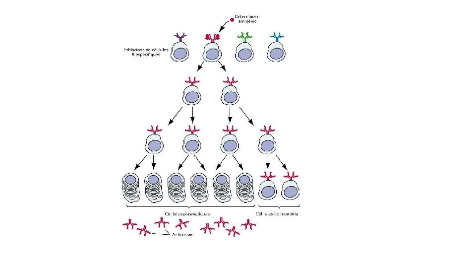 IMMUNITAT ESPECÍFICA O ADQUIRIDA Definició Mecanisme d'accio RESPOSTA CEL·LULAR Accio dels limfo cits T, derivats del Ce l·lules que reconeixen i destrueixen timus, que maten ce l·lules. agents pato gens Ce l·lules fagocita ries que ataquen quimiota cticament i especi ficament l'agent patogen. RESPOSTA HUMORAL Accio dels anticossos produi ts pels Resposta qui mica. Accio de mole cules Limfo cits B, originats directament de la solubles en el plasma destinades a medul·la o ssia. aglutinar, precipitar, etc. Activacio de les protei nes plasma tiques del complement.