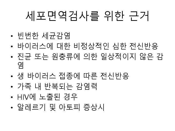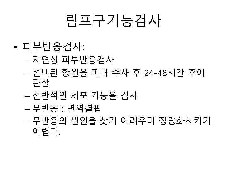알레르기 질환의 검사 • 1) 혈청 총 Ig. E 측정 • 2) allergen specific Ig. E antibody – – 피부반응검사 RAST MAST CAP system