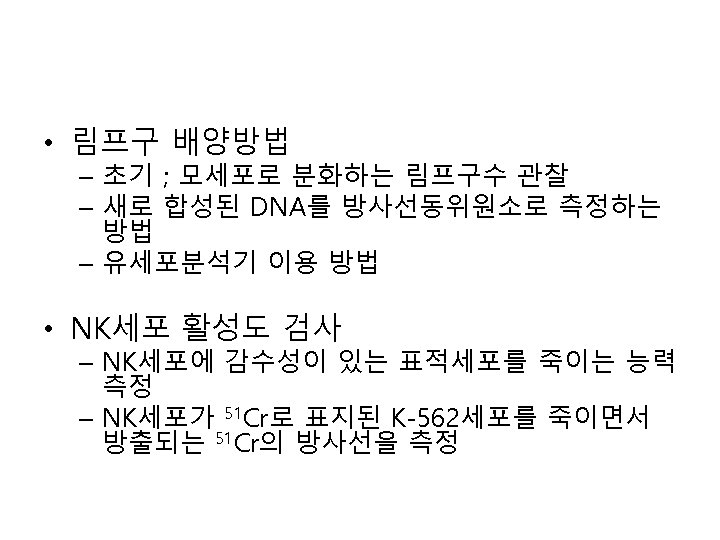 Mononuclear cell isolation • Ficoll-Hypaque (FH) separation – 두가지 물질을 섞어 비중을 1. 077에 맞춤 – Centrifuge후 lymphocyte는 plasma-Ficoll. Hypaque interface에 위치 • Cell viability – > 80%, minimal – > 90%, preferable