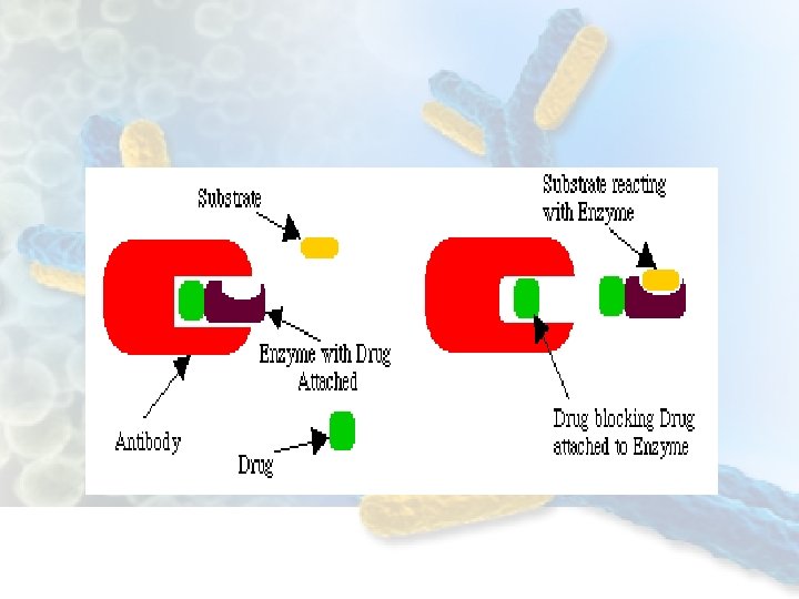 Competitive ELISA • Sandwich binding principle cannot be applied to small molecular substances, haptens such as steroids some hormons, olgo-peptides, neurotransmitters, etc. • Small molecular substances cannot have plural antigenic determinants to form sandwich. For these substances, competitive assay with an enzyme is applied. Sometime it is called competitive ELISA which has competitive binding principle like RIA (radioimmunoassay).