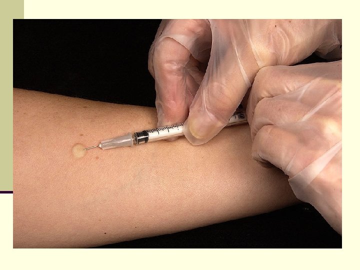 Diagnosis n Diagnostic tests in vivo include delayed cutaneous reaction (e. g. Montoux test ) n In vitro tests for delayed hypersensitivity include mitogenic response, lymphocytotoxicity and IL-2 production. n Corticosteroids & other immunosuppressive agents are used in treatment.