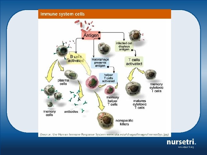 Function of T helper (CD 4 cells) • Directs immune system • Signals maturation of B cells • Activates cytotoxic T cells and macrophages