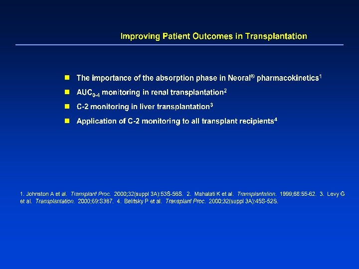 Interpatient Variability of Cs. A Absorption Not Captured by C-0 1400 AUC 0 -4 Cyclosporin Concentration (ng/m. L) 1200 AUC 0 -4 1000 800 600 400 200 0 0 C-0 2 C-2 4 6 8 Hours Post-Dose 10 12 Extent and rate of absorption are highly variable. Patient differences are highlighted in the absorption phase. Adapted from Johnston A et al. Transplant Proc. 2000; 32: 53 S-56 S.