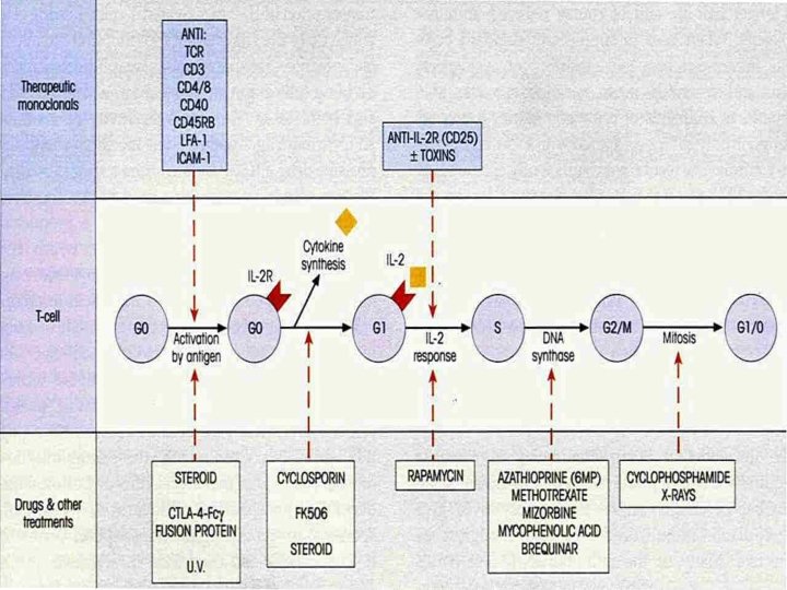 Immunosuppression Immunosuppressive protocols in transplantation include the targeting of IL 2/IL-2 R axis that are considered to be the most important pathway for T–cell proliferation.