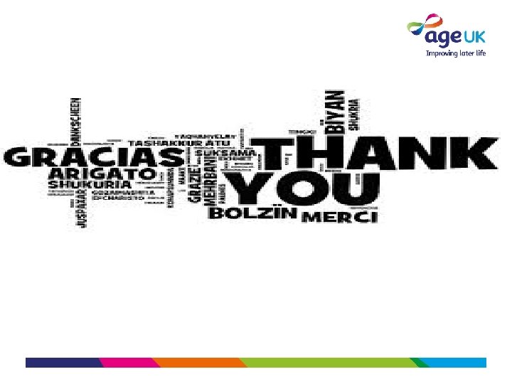 What can you do to help? • Design of commissioning specifications to value local delivery and voluntary sector expertise within procurement guidelines • Buy from social enterprises and charities- e. g. Age UK Insurance products and services • Donate time and expertise