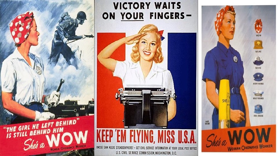 ROSIE THE RIVETER Most iconic image of the war Aimed at recruiting female workers for the munitions industry http: //www. history. com/topics/worl d-war-ii/world-war-iihistory/videos/ask-history-rosie-theriveter? cmpid=mrss_int_taboola_vi deo_his