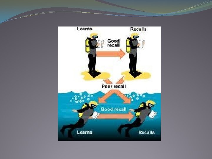 L’importanza del contesto: Godden & Baddeley (1975) memorizzazione di 36 parole e ripetizione nello stesso contesto o in un contesto differente