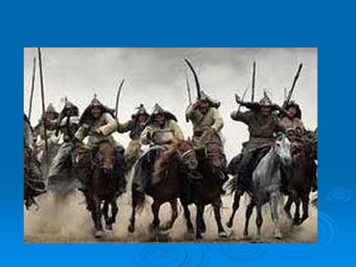 The Mongol Empire Skilled with horses and learned to ride at an early age. Ø Used to living in harsh environments with scarce resource. Ø Tough and fierce warriors. Ø Not united but separate clans led by a chief or Khan. Ø Temujin conquered his rivals and united the clans in 1206. Ø He takes the name Genghis Khan “Universal Ruler” Ø