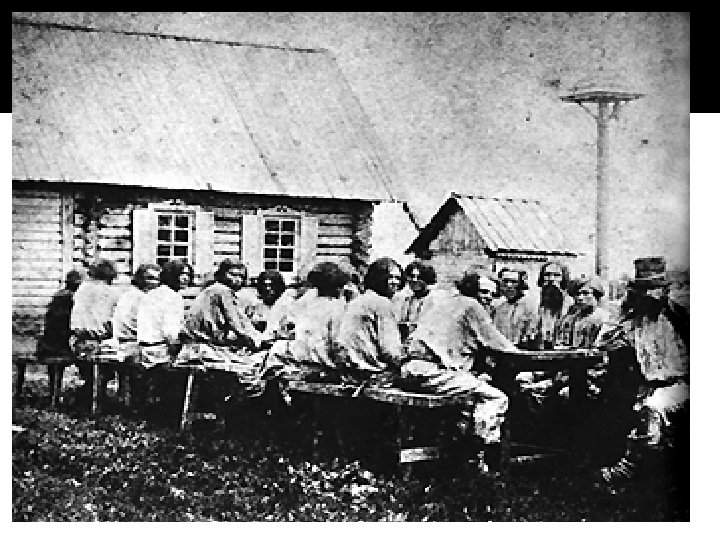 Peasants • - village communes - insufficient land to support families • - low technology; inefficient farming • - bad diet - high mortality rate; vodka • - incessant labor • - superstitious, fatalistic, ignorant, and illiterate • - therefore, Tsar viewed as “little Father”